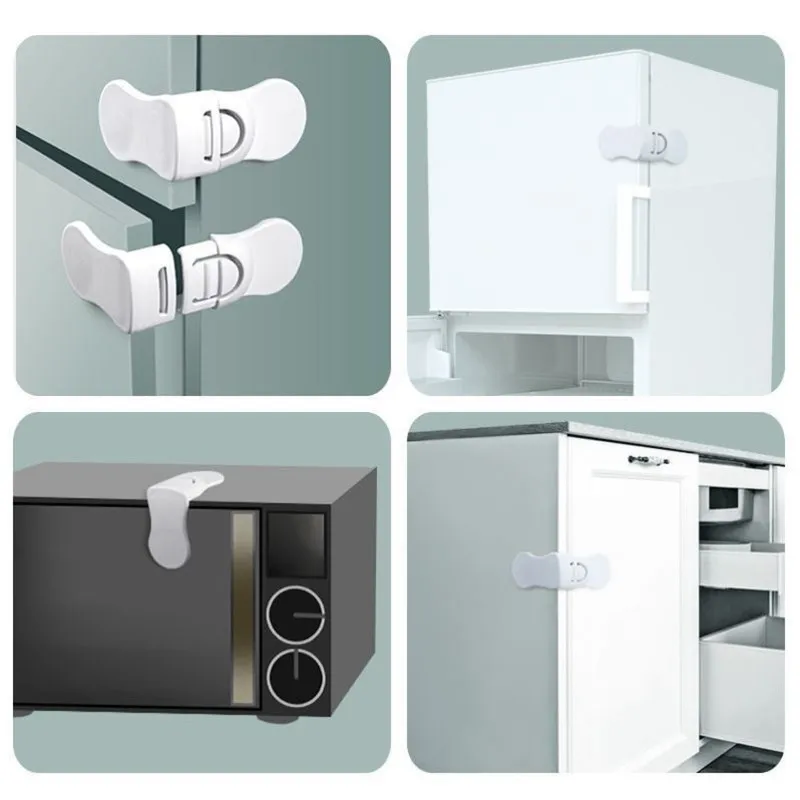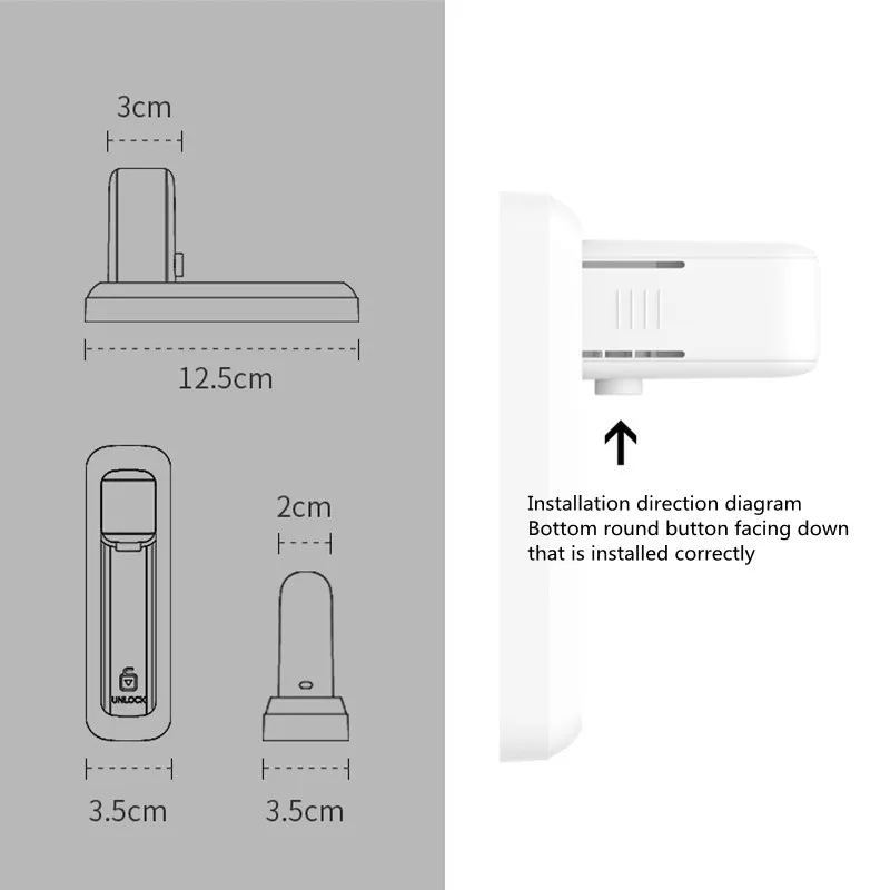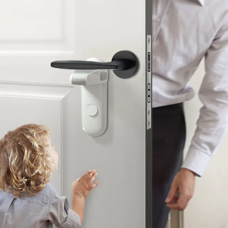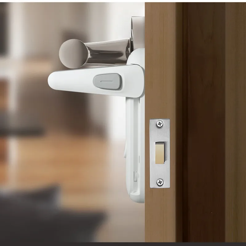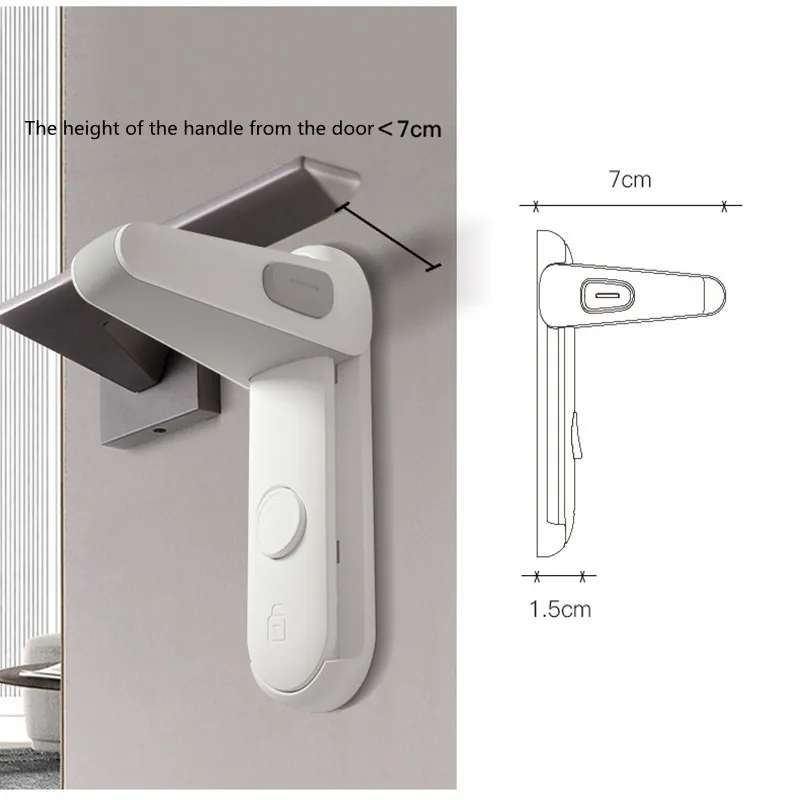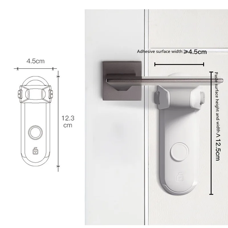 How it works: Simply peel the 3M VHB adhesive backing and press the lock firmly onto the door surface behind the handle. The dual-button mechanism allows adults to rotate the arm to lock or unlock, effectively blocking the handle from being pushed down by kids or pets.
