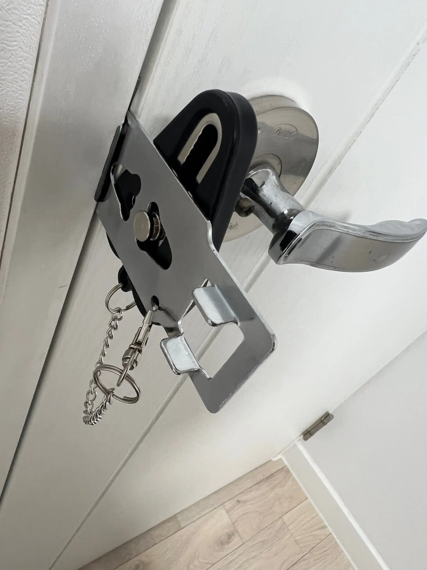 It works perfectly!! So, if you are locking for an effective, carryable lock for your door, you should buy this!